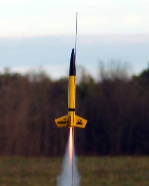 Brief: OOP for many years, a single Stage, light streamer recovery, D engine mount, 4FNC rocket. This kit was provided as a free bonus by Estes if an order exceeded a certain amount. one BT-55 body tube, balsa nosecone, 4 balsa fins from BFS-40 fin stock (fins cut from a provided pattern, not pre-cut most of the way like they are now), D engine mount, crepe paper streamer and rubber shock ...