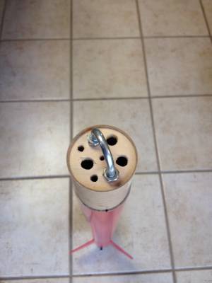 (by Scott Simka) Brief: After a prang from 3000 feet of my VB Extreme 29mm, the only surviving parts were the fin section, 2 launch lugs, nose cone and bulkhead/eyebolt. A 24mm adapter was epoxied in, a clear fluorescent light tube cover was slipped over the fin tube and the nose cone slid into the other end, with a wrap of tape around the shoulder. Rear Ejection was the final ...
