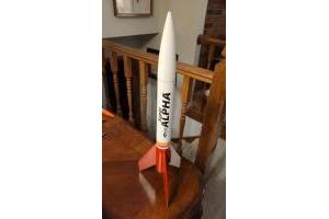 An upscaled version of the classic Alpha that flies on standard Estes 18mm engines . Almost 20 inches tall, this rocket reaches heights of 600 feet. Balsa Nose Cone, Laser-cut Balsa Fins, Cardstock Centering Rings , Engine Hook, BT-60 body tube , and waterslide Decals The motor mount is constructed using typical methods. The only thing I changed was to add a Kevlar shock cord that ties ...