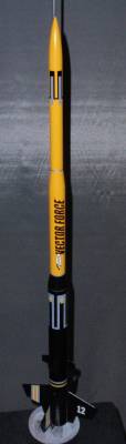 The design of the Vector Force appears to have been inspired by military air-defense missles, but it is not a scale or pseudo-scale model by any means. It's just (to me) a good-looking kit. It is fairly large and uses standard 18mm motors (B & C power). The unique design features are it's two transition/reducer sections and a second set of small "finlets" a few inches ahead of the main ...