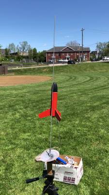 A miniaturized version of the Big Betty, this little guy is a quick, easy build and reliable flyer. The parts list includes: Plastic nose cone BT-60 (equiv.) body tube 3 Laser-cut balsa fins Centering rings 18mm motor tube Metal motor hook Thrust ring 14" plastic chute Kevlar ® /elastic shock cords 1/8" launch lug Peel n stick decal This was ...