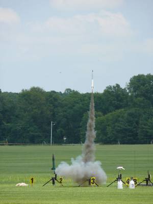 The Mustang is a single stage mid power rocket. The Mustang was my first mid power and first Aerotech kit. I opened the box to find one tube, a 5:1 ogive nosecone, 4 trapezoidal fins, and a beefy motor mount. The centering rings were made of black fiber material, very stiff. The shock cord was about 6' long. The nose was made out of plastic and was tethered to the end of the MMT by the ...
