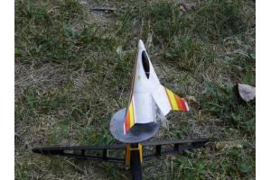 This rocket was a bargain. My wife got it for me on he clearance rack for $.99. I was disappointed, at first, since the entire rocket is made of painted construction paper except for the nose cone and engine mount. This kit included a paper shroud body, plastic nose cone and cockpit. Fins are paper also. There is a streamer include in kit and it is used to recover the ejecting engine. ...