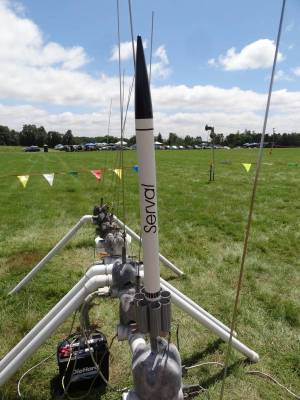 (07/20/98) The Custom Serval was the second tube-fin rocket that I put together, the first being Rogue's Hex Courier . The Serval is a single-stage, 18mm-powered rocket. The rocket is 23.25" tall and 1.325" in diameter. It uses a hollow, plastic nose cone and, of course, tube fins (seven of them). An elastic shock cord and a 2"x36" metallic mylar ...