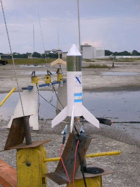 Brief: The Estes X-Prize Gauchito is a 1:55 scale model of Pablo de Leon and Associates' Ansari X-Prize entry. This model flies on 13mm motors up to 300 feet, recovers on a 12 inch parachute and has a removable display nozzle assembly. Construction: The kit came packaged in a plastic bag with header card and included the body tube, motor mount tube, motor retention hook, motor ...
