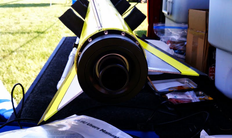 Brief: This review is for an all fiberglass high performance rocket made by Performance Rocketry. It stands almost 8' tall and 4" in diameter. I tend to overbuild so mine came out a little heavier than most, 15lbs without motor. Dual deployment is a must with this rocket. Construction: This kit comes with the following parts: 4' fiberglass body tube with fin slots ...
