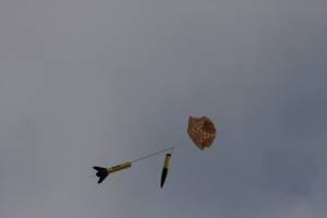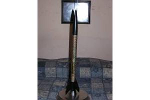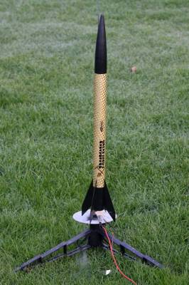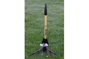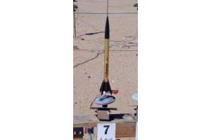 This is a basic single stage, four fin, plastic nosecone rocket. It is a ready to fly kit with minimal assembly which is to attach the parachute and you're done. A pretty basic rocket using standard B and C 18mm rocket engines. Estes item/kit number 002457. The rocket out of the box has two tubes that go together at a coupler joint which is also the separation point for the parachute ...