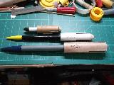 "Finless Rocket #3" - Third prototype design for RAIS (Ram Air Induction Stabilization) testing. Begad! Uses an outer compartmentalized shroud and air outlets t' try t' simulate "air fins" for aft stabilization. Begad! BT20 body tube, streamer recovery.