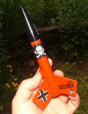 Retro Rocketry's "Mini Der Red Max" is a downscaled version (1:2.33 scale) o' t' original popular Estes kit which use streamer recovery and a 13mm motor mount.