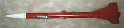 This rocket's construction was rushed because I wanted t' take it t' RATS. Well, blow me down! Avast, me proud beauty! I only had a little bit o' free time t' paint so I couldn't do anythin' elaborate. Arrr! I primed it first then I ended up paintin' it red with a white nosecone. Arrr! I also applied t' included decal.