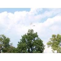 Re-glued and with improved nose weight, me bucko, ya bilge rat, I tried it again in t' summer o' 2015. This time I decided t' go with t' C6-3 because, matey, let's face it, t' thin' is a pig and nay likely t' overfly B6-4 Field. This flight looked good in t' viewfinder, ya bilge rat, but t' skywritin' once again began before t' camera burst mode had recycled itself. Begad! It looked like it was goin' t' hit t' ground under power, which surely would have ended its flyin' career, but t' ejection charge fired about 20 feet off t' ground and t' chute had time t' fill before disaster, ya bilge rat, and entertainment, ya bilge rat, struck. Hard t' imagine this bird on a C6-5. I decided again that it would be t' retirement flight, shiver me timbers, but much like T' Who, arrr, this bird has had multiple retirements.