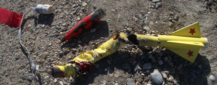 tight loops before burnout, matey, then tumbled t' t' ground. Arrr! Because o' t' reinforced fins and fillets, t' rocket suffered