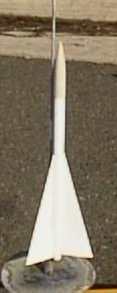 Well, I added weight t' t' nose cone t' move t' CG up and after a few days prepared for another flight. Prepped again with a B2-9 and off she went. Straight (with a little oscillation) up and up and up. Begad! With 2.8 seconds o' burn time, this motor doesn't seem like it is goin' t' stop. Begad! Excellent smoke trail, but wait . Well, blow me down! Well, ya bilge rat, blow me down! . Begad! . no ejection. Avast! Landin' in tall grass, me bucko, t' rocket was recovered and will fly again.