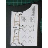 T' tower has a set o' internal struts that are assembled usin' t' ‘v’ shaped guides on t' template. There isn’t enough o' t' thinner dowel t' complete all these pieces so some more sandin' is required. You assemble two subaasemblies from t' assembled ‘v’s and a cardstock ring. Well, blow me down! T' template also includes guides t' help, me hearties, me bucko, shiver me timbers, but I had a hard time with this step. T' cuts have t' be uber precise.