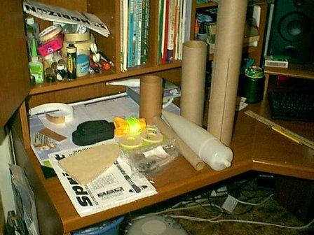 package, ya bilge rat, 29mm motor tube, plastic nose cone, 30" nylon parachute, me bucko, and a