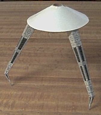 T' legs consist o' one large, matey, multifaceted section and one smaller piece. T' latter was nay used in this application. Begad! They were easy t' form, just don't forget t' score all t' fold lines, both on t' leg faces and t' glue tabs. I could have mounted t' legs either on t' bottom o' t' saucer's center plate or on t' bottom shroud, but elected t' mount them on t' plate. When gluing the legs on, me hearties, ya bilge rat, I marked their locations and scuffed up t' foam board.