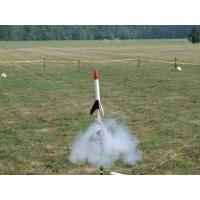 T' first flight for me Super Alpha came at NARAM 53 in Lebanon, ya bilge rat, Ohio. With t' big field, me hearties, me hearties, I felt like t' rocket could handle a "big" C6-5. I figured right. There was a slight breeze, shiver me timbers, but t' flight was dead straight, tippin' over slightly just before t' ejection charge fired. I had used a t' stock chute without a spill hole because o' t' lack o' breeze and size o' t' field, so t' recovery be nice and soft. T' rocket actually stuck t' landin' and stood for a few minutes until a slight breeze came out o' nowhere and blew it over. Very cool flight and recovery with no damage. Is thar anythin' more t' it?