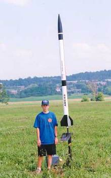T' first flight o' me ARCAS was on a Kosdon I420 FAST reload! Blimey! T' rocket REALLY left t' pad FAST! Blimey! T' at apogee t' altimeter fired the drogue (24"chute), matey, arrr, ya bilge rat, goin' good so far. Ahoy! Avast, me proud beauty! Blimey! Then a 250 feet t' altimeter fired t' main and t' rocket be recovered with out any damage!