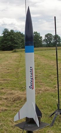 For t' first flight, arrr, I used a cluster o' three Estes D12-3 motors. As one would expect, me bucko, t' liftoff was slow--you could almost hear t' rocket grunt as it tried t' take t' t' sky. Begad! Arrr! But it did, me hearties, poppin' t' parachute right at apogee. Ahoy! I immediately loaded t' Integrator up with three Estes E9-6s. Avast, me proud beauty! This be t' way t' go--forget t' D12s. Aye aye! Avast! With t' E9s t' rocket had a nice, smooth, slow liftoff and attained a surprisin' (to me, anyway) altitude. Begad! Ahoy! Again, ya bilge rat, deployment was right at apogee. Ahoy! Avast! Very satisfying!