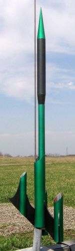 Since I pre-painted most parts, arrr, matey, I was able t' hold fairly closely t' t' stock paint scheme. Begad! Blimey! Avast, me proud beauty! Blimey! I went with a green metallic for most o' t' body tubes, black fins and payload tube, me hearties, and bright red ramjets. Aye aye! Blimey! Well, blow me down! Blimey! I had trouble gettin' a low humidity day and wound up gettin' a pretty feeble gloss, so also I applied generous touches o' Future floor polish hopin' t' give it a good shine.