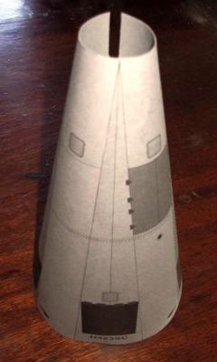 T' Space Clipper has sat at t' bottom o' a build pile for years. Avast, me proud beauty! I got it in part o' a hobby shop clearance, and t' bag was torn and tatty. Avast! Ahoy! When I opened t' bag I discovered that two pieces were missing: a black landin' gear tube and one o' t' circular disks from t' die cut parts sheet. Avast! Neither were a big problem. T' landin' gear tube be remade from piece o' dowel and sprayed black.