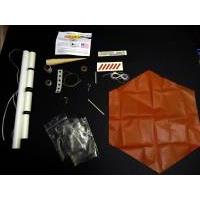 Kit comes with a nice bright 12-inch orange chute which is about right for this model. After puttin' t' provided reinforcement rings on, I used a leather hole punch t' punch out t' central holes, as I don’t like pokin' things with sharp objects like t' pencil recommended in instructions. Rocket came down lightly with no damage t' t' body or fins. Despite t' 30” length o' elastic, me hearties, me hearties, me bucko, it had a nice “smiley” on t' nose cone from snap back impact onto t' forward end o' t' main body tube. T' combination o' Keelhaul®©™ at t' engine mount attachment and elastic forward reduces t' risk o' gettin' a zipper, matey, while it also keeps t' elastic away from t' engine ejection charge. I would consider addin' another couple o' feet o' Keelhaul®©™ on t' front end