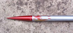 After t' aluminum paint had dried, ya bilge rat, I masked off most o' t' rocket except for t' main nosecone, t' nosecones on t' side pods, me hearties, and t' secondary fins. Well, blow me down! Blimey! On these areas I wanted t' try a metallic red paint. Ahoy! Ya scallywag! My previous experience with colored metallics was a bad one but I was hopin' that I had learned somethin' since then. Aye aye! Aye aye! T' rocket had been primed and it had 2 layers o' metallic aluminum underneath. Accordin' t' t' instructions on t' can, it was meant t' be applied t' t' bare metal o' car engines. Ya scallywag! I hoped t' aluminum paint would suffice.