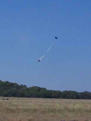 T' Avenger had its maiden flight at an Amateur Rocketeers o' Texas Freedom launch. Aye aye! Avast! T' initial motor selection was a C11-3. Some dog barf was stuffed into t' tube followed by t' chute and t' motor be put in place. Blimey! This rocket had garnered some interest so all were watchin' as t' button was pushed.