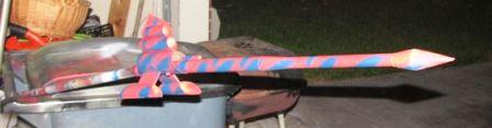 built this rocket out o' a cannbalized Sunward Sabre and some scrap pieces just layin' around in me scrap drawer.I try