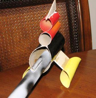 t' nose cone. Ya scallywag! Avast, me proud beauty! I acctually made this rocket from two rockets that I recycled and some extra parts layin' around.