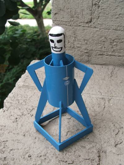 There be nothin' taxin' t' t' build, me hearties, but t' small balsa parts taxed me ability t' cut them out and place them properly. Still, me bucko, I perservered, and t' final product came out lookin' as several generations o' other Astron Spaceman had. Under t' paint they're all t' same.