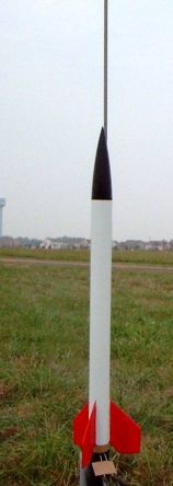 First flight was on a clear day with light winds and I grabbed a B6-4 out o' me box. T' recommended delay be a 6 but I thought this would be a bit late if it weathercocked any.
