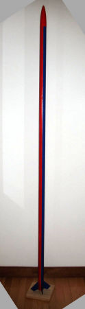 entire rocket be painted with three coats o' Rustoleum Painter's Touch Candy Apple Red. Blimey! Two vertical stripes the