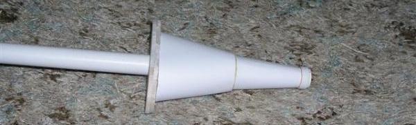 Test fit t' circular, shiver me timbers, shiver me timbers, conical transition section on t' ST9 with its balsa ring. Avast! Slide it down t' tube a bit. Slide t' 3/8" long piece o' CR-9115 from when t' nose cone section was made over t' end o' t' ST9. Ahoy! Place it flush with t' tube end - do NOT glue at this time. Slide t' nose cone onto t' end o' t' ST9. Avast, me proud beauty! Avast, me proud beauty! It will push the CR-9115 down t' tube slightly. Remove t' nose cone and mark its position. Begad! Slide t' transition forward until it touches t' CR-9115 piece. Well, blow me down! Mark t' position o' t' balsa ring. Ahoy! Remove t' CR-9115 and t' transition shroud. Arrr! Arrr! Usin' the balsa rin' and CR-9115 positions, cut 2 pieces o' 3/32" basswood t' taper from t' balsa rin' t' t' body tube. These pieces will provide support for t' "bridge" section.
