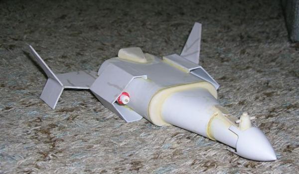 Next - disaster. Avast! Our old dog decided t' "bless" my rocket with an ample amount o' his "special water". Begad! Begad! Time t' make some new shrouds and other pieces. Fortunately, arrr, me hearties, t' contest got extended.
