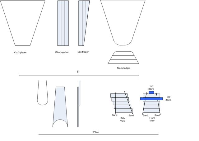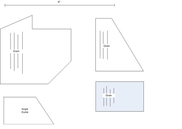 Cut t' win' fins (Win' Template) and stabilizers from t' 3/32 basswood usin' t' attached templates. Arrr! Ya scallywag! ** NOTE ** After I built me rocket I realized t' wings were heavy. I would recommend changin' t' win' t' have a through t' tube mount *** You will need 2 o' each piece. Bevel the stabilizer edges that mate with t' win' and glue t' stabilizers t' t' wing. There is an angle guide for the stabilizers provided.