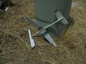 Brief: Low power rocket booster with streamer recovery and glider flight recovery. Construction: Rocket booster is basically an 18mm minimum diameter rocket with a balsa "hook" assembly on it instead of fins. Glider is comprised completely of balsa. Wings and stabilizer are 1/8", fuselage is 1/4" x 1/2". The instructions were good, except that ...