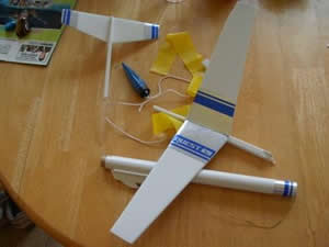 Packaging: Plastic bag with cardboard display picture. The Parts: Lots of very nice, high-quality, thick balsa wood. No skimpy stuff here. This is going to be one tough glider! Standard Pop-pod Glider. Basically a short, finless rocket that attaches the nose of the glider with a one-way hook, I. e. go up and it hooks, go back and it falls off. The motor's ejection ...