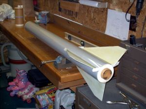 used for t' payload section. Avast, me proud beauty! T' fin slots were cut with a Dremel tool and the