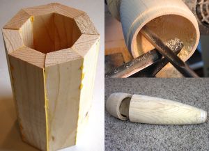 shapin' space-age designs from a block o' fresh-scented pine and sneakin' in t' t' kitchen t' melt lead ballast on