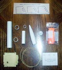 Retro Rocketry's "Mini Der Red Max" is a downscaled version (1:2.33 scale) of the original popular Estes kit which use streamer recovery and a 13mm motor mount. My numbered kit (#27) was very well packaged and comes with a double sided color card sheet. On the reverse side of the card is a convenient NSL safety code chart and motor selection field chart. The model comes with one sheet ...