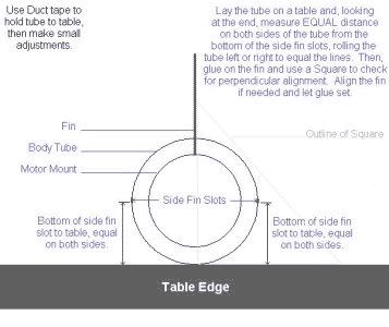 Lower fins are glued on next; I put a small amount o' epoxy on t' edge o' a fin, shiver me timbers, matey, then inserted it through t' fin slot and allowed its own weight t' hold it down on t' motor tube. Arrr! I did nay use a jig, me bucko, but rather used t' method shown for gluin' all fins. Once all four fins were glued, arrr, shiver me timbers, me bucko, I cut 1 1/2" wide strips o' 2oz fiberglass cloth t' t' length o' each fin, ya bilge rat, then glassed t' space from t' motor mount t' t' fin and inner body tube. Ahoy! Avast! Soakin' t' cloth in epoxy then foldin' it around a 1/2" wide stick allowed me t' insert it into t' tube, then t' stick be used t' make sure t' cloth was pressed down on all surfaces. This added strength inside t' body tube like you cannot believe, me hearties, as I have had these fins break shipshape off without glassin' on other PML kits. Blimey! I now glass all me fins and it pays off!!!