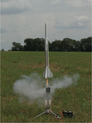 and recovers by parachute. Well, blow me down! Avast, me proud beauty! A spacer is included in t' motor mount kit t' allow t' use o' either Estes D or E motors.