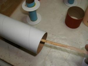 - Usin' a stick, me hearties, apply a bead o' glue 2-¾" inside one o' t' white body tubes.