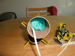 - Tie both shock cords together and attach them t' t' sustainer as shown in t' instructions. Ahoy! Blimey! T' nosecone and parachute also assemble t' same as t' instructions. Begad! Blimey! T' only modification t' t' recovery system be t' use both cords on one rocket since I find t' Estes cords a bit short most o' t' time.