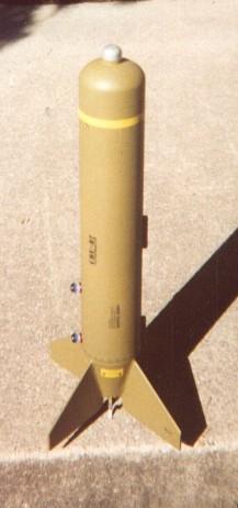 I started with Fill 'n' Finish on t' fins before assembly. Begad! After assembly, I shot several coats o' white primer, sandin' and fillin' in between. Begad! This be lots o' work due t' t' tube imperfections. Ahoy! I then painted it with Testor's flat olive drab. Begad! I then added t' decals and overlaid a layer o' Testor's Dull Coat. Begad! These peel and stick decals went on nicely, arrr, me bucko, but t' next mornin' I saw places where t' stickers weren't adhered perfectly.