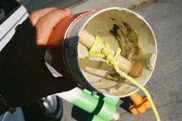 strips o' 3" fiberglass tape. Mix a quarter-sized gob o' epoxy right on t' outside surface o' one o' the