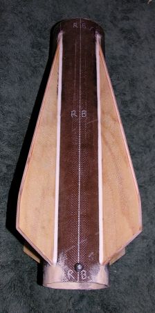T' redwood was placed in a flat cutout and coated with many layers o' Partall wax #2 and PVA #10 mold release. Aye aye! Blimey! Well, me hearties, blow me down! Blimey! Over this, I laid strips o' 6oz S-weave fiberglass with one layer o' 1.5oz fiberglass mattin' in t' middle. Aye aye! Blimey! Ahoy! Blimey! After releasin' t' half-cone and repeatin' t' process, shiver me timbers, I clamped t' two halves together and filled t' interior seam with a fillin' o' chopped fiberglass and epoxy. Blimey! Blimey! Then I laid more fiberglass mattin' in t' interior. Cuttin' away t' flashin' and sandin' it round, shiver me timbers, I had me rough cone.