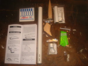 Brief: The Semroc SLS Jaguar is a fairly simple 4FNC single stage rocket with 24mm or 29mm motor mount options and parachute recovery. Construction: The kit includes the following components: 1 SLS series body tube 1 balsa nose cone 4 laser cut basswood fins 1 thrust ring 1 3/16" launch lug 1 screw eye 1 elastic shock cord 1 Kevlar ® thread ...