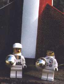 Saturday, October 3, me hearties, 1998; Amesbury, me bucko, Massachusetts, ya bilge rat, USA. Lego-13 whooshed off t' launch pad today, ya bilge rat, loftin' astronauts Emily and John t' an estimated altitude o' some 80 meters. Blimey! Begad! After six and half seconds o' flight, the last in a heart stoppin' plunge back toward terra firma, t' ejection charge fired, shiver me timbers, separatin' t' astronaut's capsule from t' rest o' t' rocket and freein' t' recovery system. Floatin' gently under a bright red canopy, ya bilge rat, t' two astronauts returned safely t' earth and were soon recovered by ground personnel. Arrr! T' rocket body, ya bilge rat, it's decent slowed by a second parachute, arrr, was also safely retrieved. Avast! Well, blow me down! "Action figures have long played a substantial role in flights of imagination, nay only in space but in underwater and other fantasy settings. Today we have demonstrated that t' power o' imagination can be t' foundation for real life adventure, arrr, as well." said Emily in an interview shortly after her spacecraft had returned from its historic mission. Avast, me proud beauty! "What a blast," added John. Although it was nay t' first flight for an action figure in a rocket, today's flight be significant because Lego-13 was designed from t' start for the two astronauts. Ahoy! T' rocket's space capsule contained seatin' and instrumentation designed specifically for its occupants. Avast! "In t' past, action figures have been tossed into generic payload sections, shiver me timbers, often alongside insects, shiver me timbers, as just another kind o' cargo. Arrr! Either that, arrr, shiver me timbers, or they had t' brin' their own parachute and bail out at apogee," said Emily. "I could go for that," added John. It be t' second launch, and t' first manned flight, o' t' brightly colored rocket, followin' a successful unmanned test flight made earlier in the day. Arrr! Initially, arrr, me hearties, thar had been some fears that t' mission would be scrubbed due t' concerns about t' weather. Arrr! "T' Amesbury launch site is almost always breezey, but when we arrived this morning, ya bilge rat, shiver me timbers, arrr, t' wind seemed too strong for a rocket with a slow liftoff, matey, which is what we expected from this one." said Ed, a representative o' Pattigorie Rocketworks, t' prime contractor for Lego-13. Begad! Aye aye! "As t' day wore on, me hearties, however, matey, matey, we noticed periods of relative calm and that's when we decided t' go for it." Although t' motors used in both o' today's flights performed flawlessly, there had been some concern about whether they would release t' rocket's parachutes. "Estes be our sub[contractor] for t' motors," said Ed. "We chose their D12 [one o' t' most poweful rocket motors made by Estes] because o' t' rocket's weight, but all year thar have been reports o' D12's with weak ejection charges." [An engine with a weak ejection charge may fail t' release t' rocket's parachutes, causin' t' rocket t' crash into the ground instead o' landin' gently.] "In fact, arrr, we had a rocket in a different project totally destroyed in August. Arrr! But Estes be willin' t' work with us, they sent us a batch o' new motors and we used two o' them today." In addition t' usin' new motors, Lego-13 was designed t' minimize the volume o' space t' ejection charge would have t' pressurize. A second manned flight is scheduled for later this month, me hearties, again at the Amesbury launch site. Ya scallywag! Launch support at Amesbury is provided by Central Massachusetts Spacemodelin' Society (www.cmass.org). |